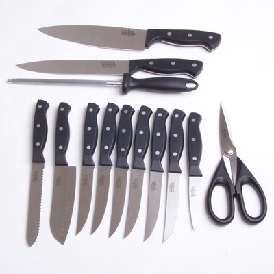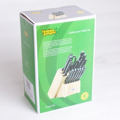 Lemon Ginger Cuisine Pro Knife Set - 14 Piece Knife Set - Includes 11 Knives Kitchen Shears Sharpening Steel and Wooden Knife Block