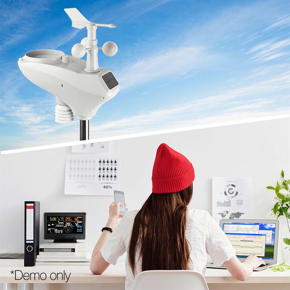 Packed with all the features and parameters that you would want for accurate weather reports and forecasting, the Devanti Weather Station is equipped with a colour LCD display console that displays real-time data including time, pressure, pressure history, indoor/outdoor temperature/humidity, rainfall, moon phases as well as light and UV index. It also comes with a rainfall gauge, wind direction wane, wind anemometer and various highly-sensitive sensors for accurate readings of every weather parameter.