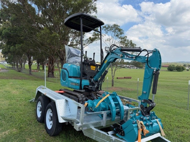 KOBOLT KX11 Excavator (Multiple attachments included) with Trailer Lot No: 0005-5062377 |