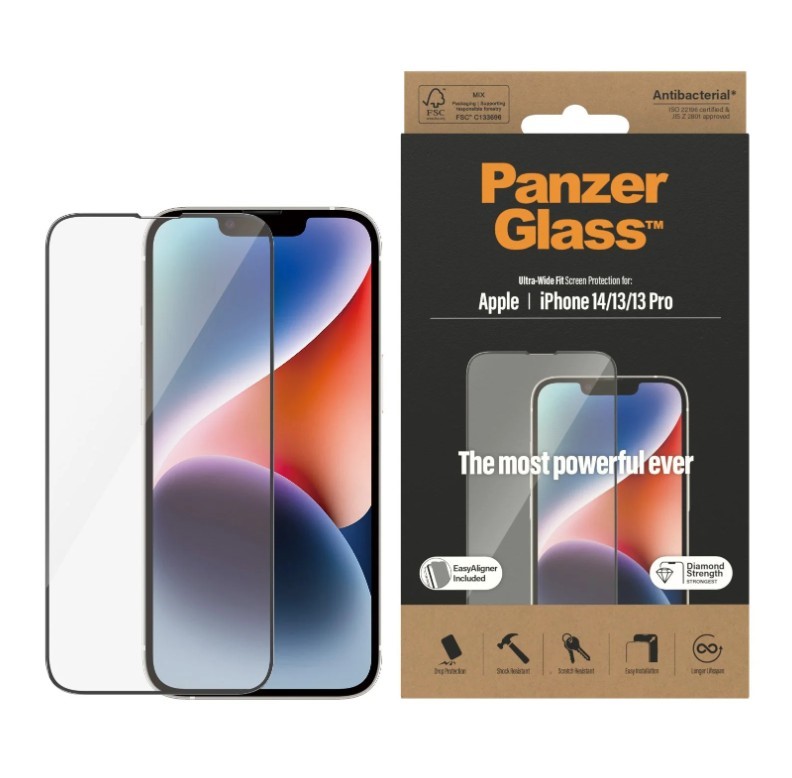 2 x PANZERGLASS Ultra-Wide Fit Screen Protection for iPhone 14/13/13 Pro.