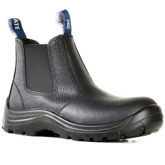 BATA Jobmate Safety Boots, Size 9, Elastic Sided, Steel Toe Cap, Black Leat