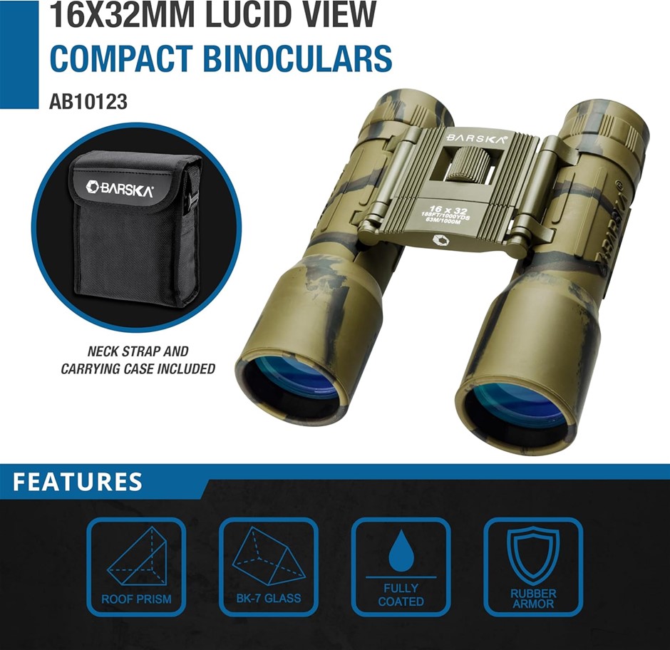BARSKA 16x32 Lucid View Camouflage Binoculars. Buyers Note - Discount Frei
