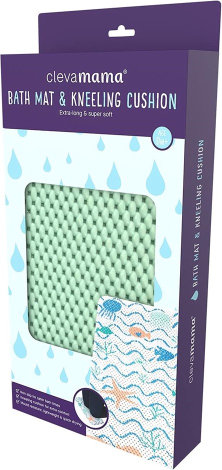 CLEVAMAMA Full Length Bath Mat with Kneeling Cushion (Aqua), 662 Grams, Blu
