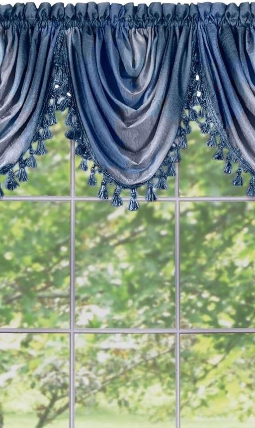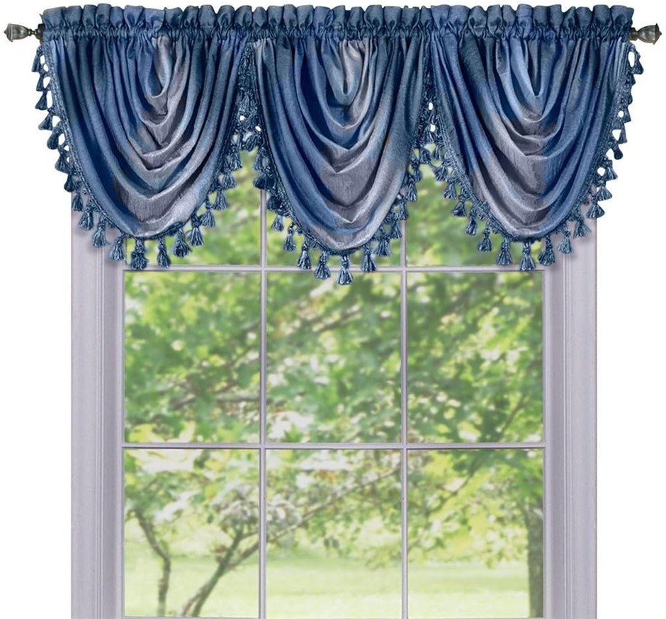 3 x ACHIM HOME Ombre Waterfall Valance Tassel Trim, 50 x 63", Blue. NB: Tot