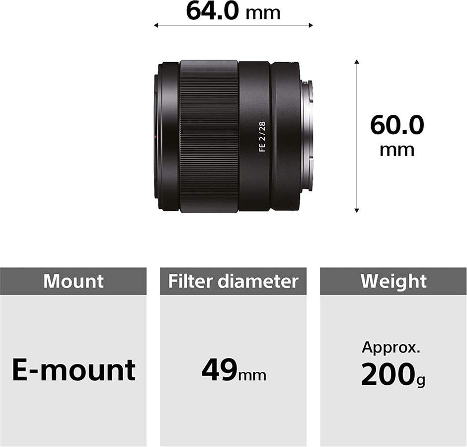 SONY Full Frame E-Mount 28mm F2.0 Wide Lens, Black, SEL28F20. Buyers Note