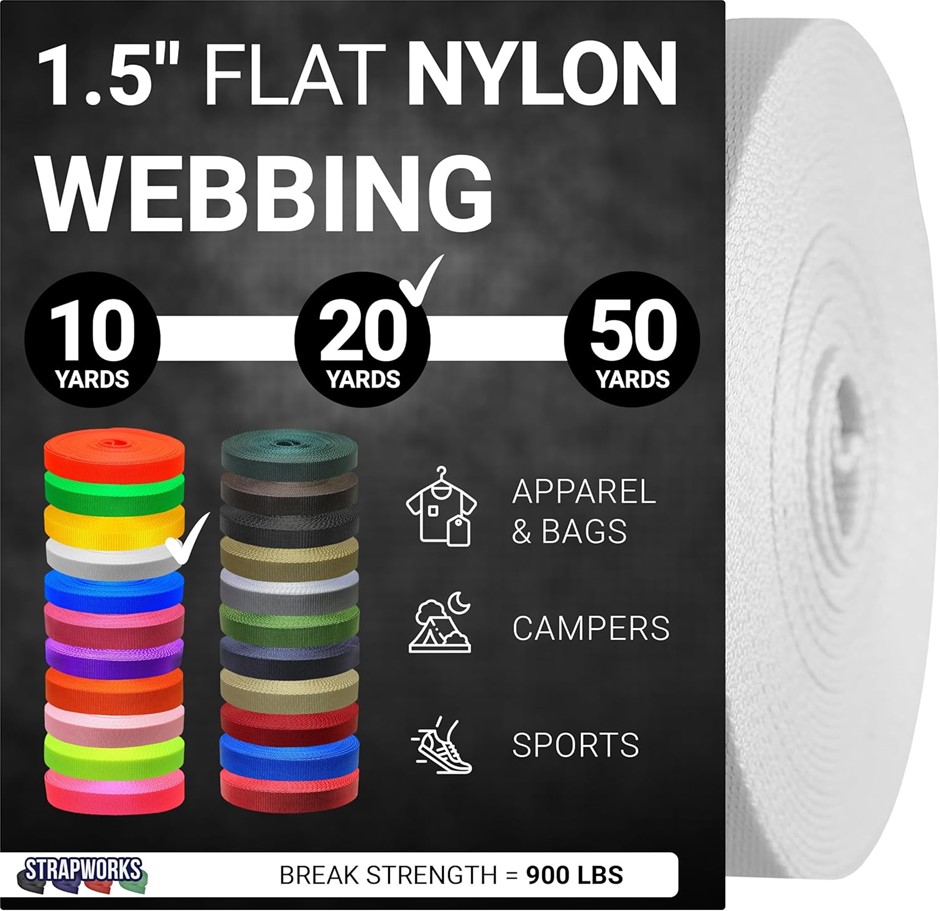 2 x STRAPWORKS 1.5" x 20 Yard Heavy Duty Nylon Webbing Strap Roll for Belt,