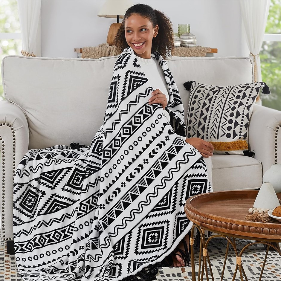 CASAAGUSTO Boho Throw Blanket with Tassel, Printed Flannel, 50" x 60", Blac Lot No: 0058-5062365 |