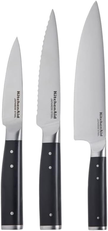 KITCHEN AID 3pc Gourmet Chef Knife Set w/ Sheath Cover. NB: Slightly damage