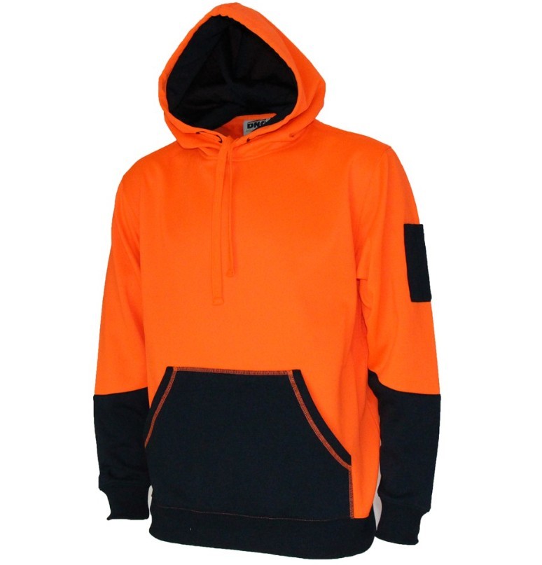 DNC Mens 3721 Hi-Vis 2-Tone Fleece Hoodie, Size XS, Orange/Navy. Buyers No
