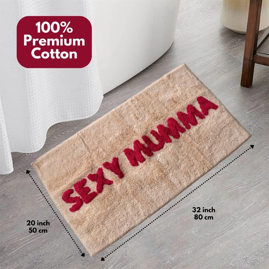 SPICY HOME CO Sexy Mumma Bath Mat, 80 x 50cm, Cream/Pink. Buyers Note - Di