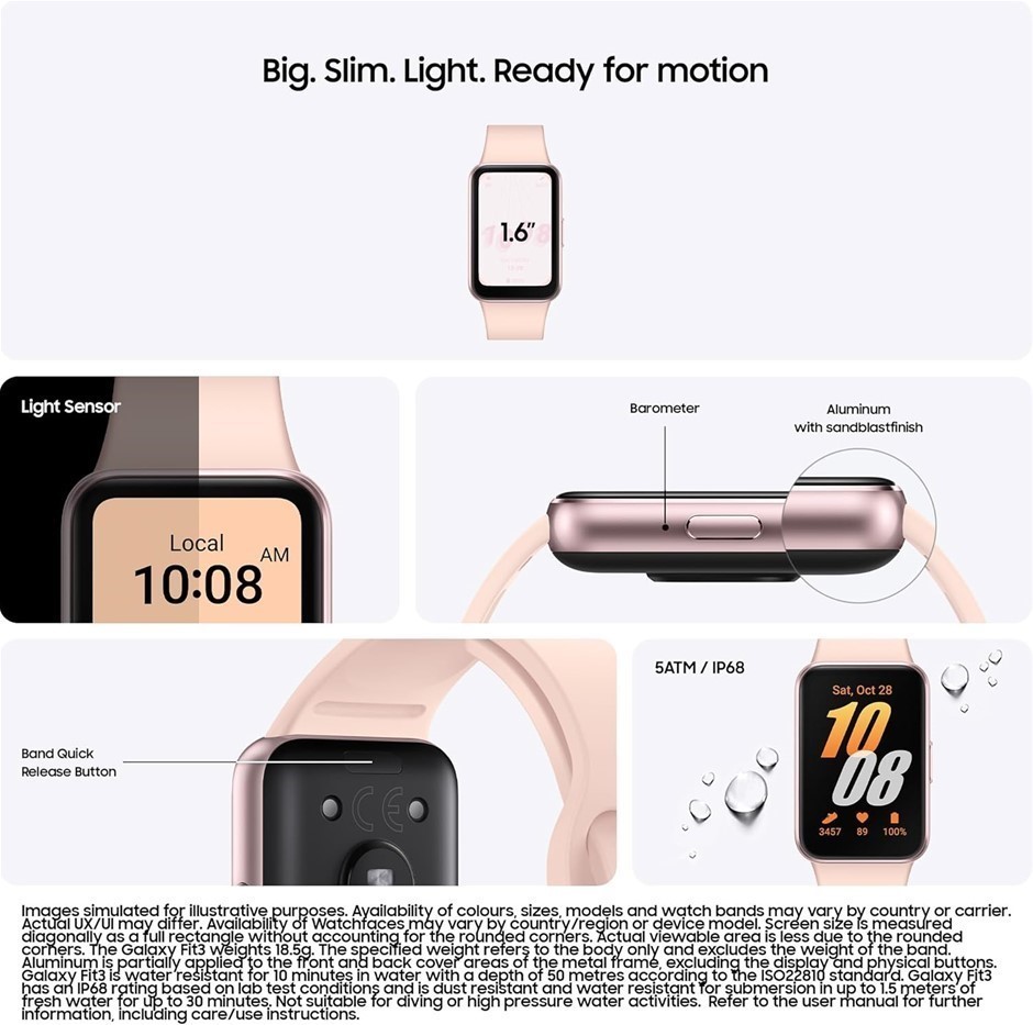 SAMSUNG Galaxy Fit3, 13 Days Battery, Sleep Tracking Smartwatch, Pink Gold. Lot No: 0011-5061848 |