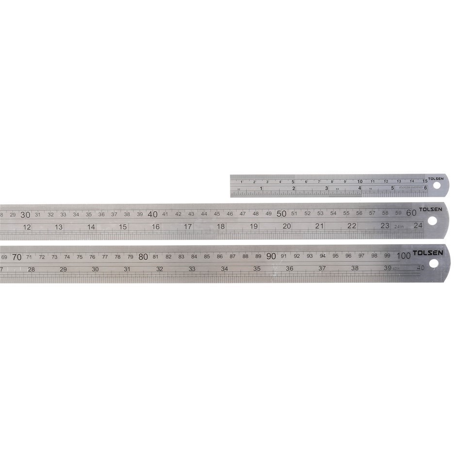 3 x TOLSEN Stainless Steel Rulers; Size: 150mm, 600mm, 1000mm. Buyers Note