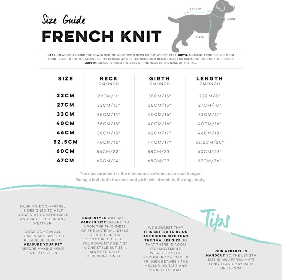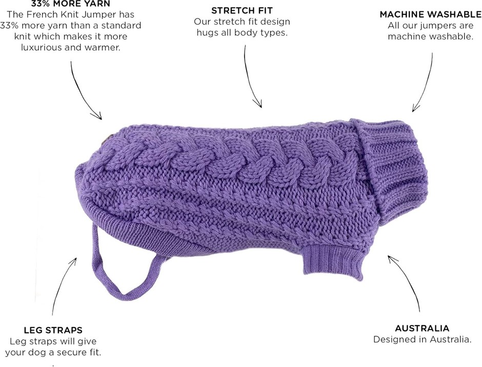 HUSKIMO French Knit Dog Jumper, 67cm, Lavender. Buyers Note - Discount Fre