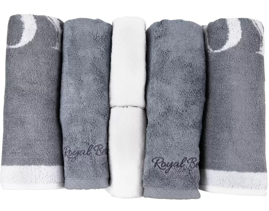 ROYAL BERGEN Premium Bamboo Towel 6-Piece Set, Grey/White. Buyers Note - D