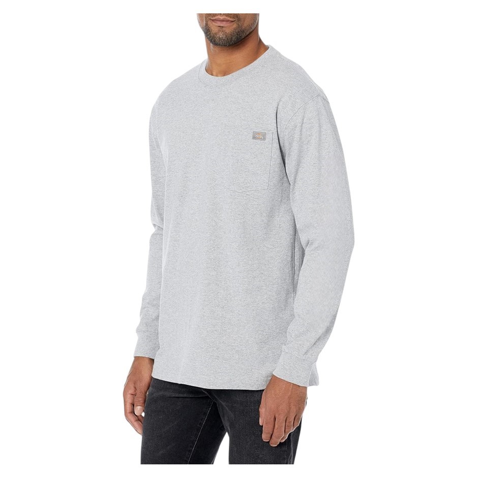 DICKIES Men's Long Sleeve Knit Heavyweight Tee, Size L, 90% Cotton, Heather