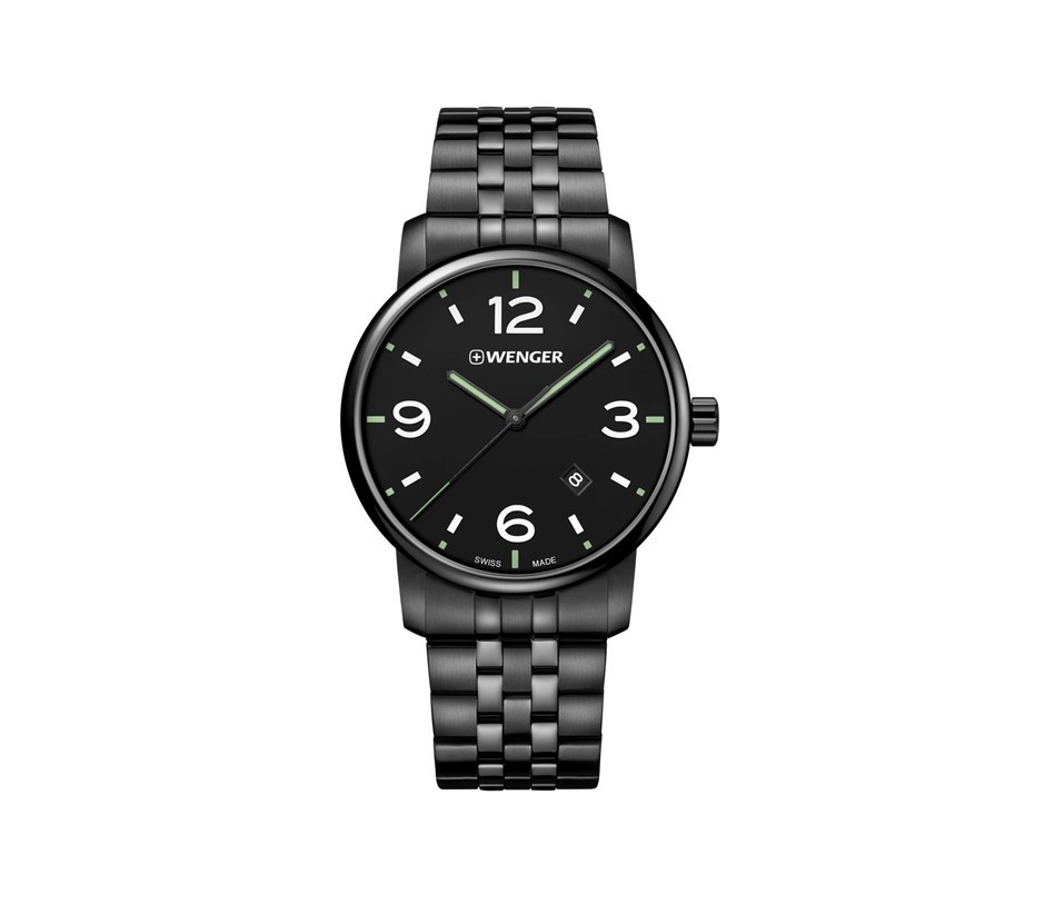 WENGER Men's 42mm Urban Metropolitan Watch, Black Dial and Stainless Steel