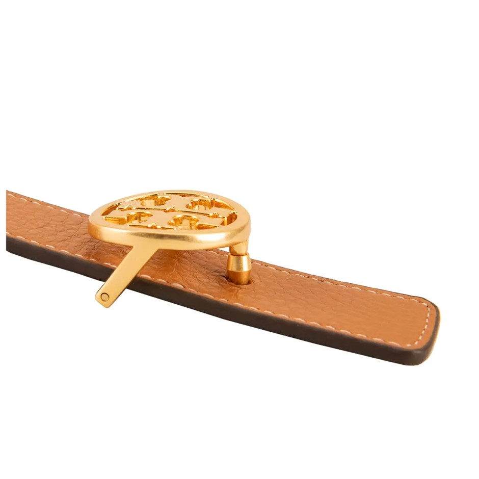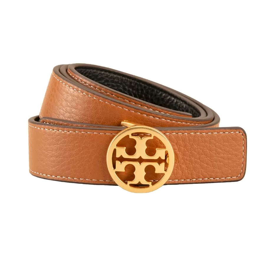 TORY BURCH Women's 1" Reversible Logo Belt, Size S, Black/New Cuoio/Gold (0