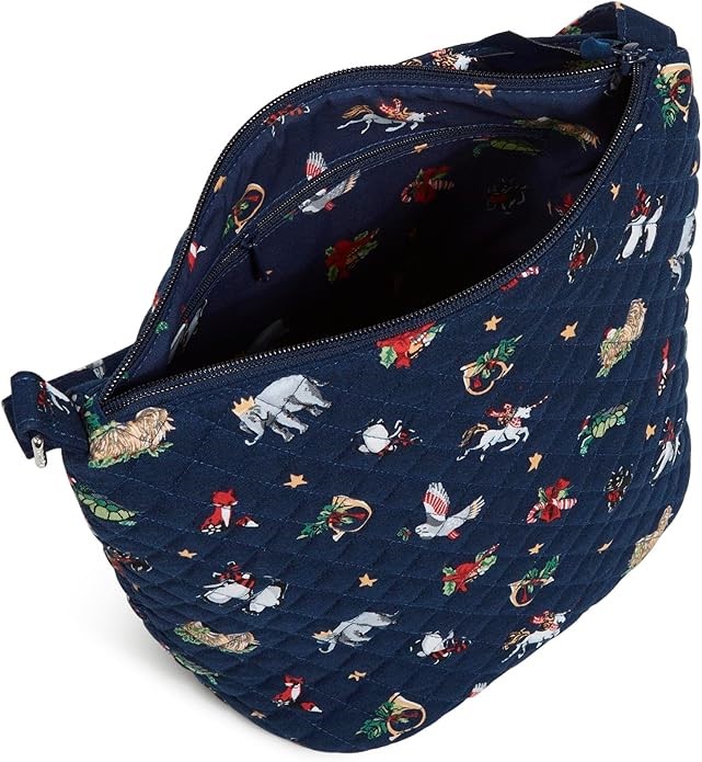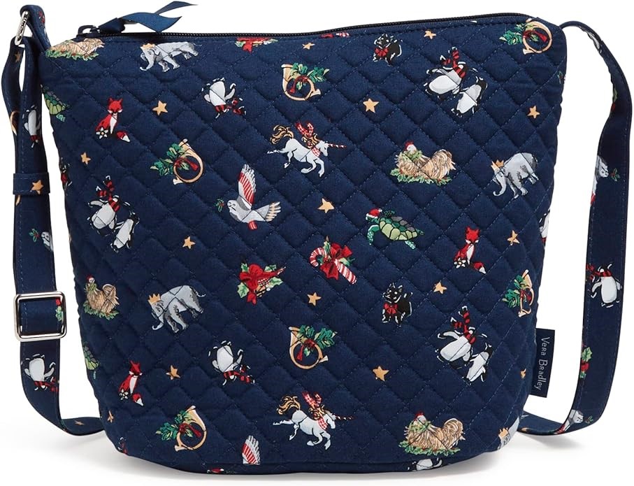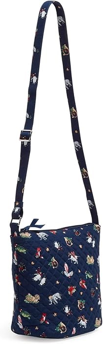 VERA BRADLEY Women's Recycled Cotton Bucket Crossbody Purse, Snow Globe Mot