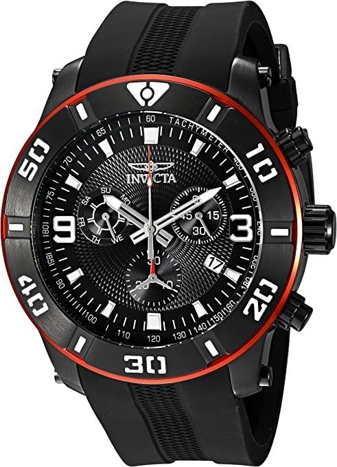 INVICTA Men's 50mm Pro Diver Analog Quartz Watch, Black Dial and Polyuretha