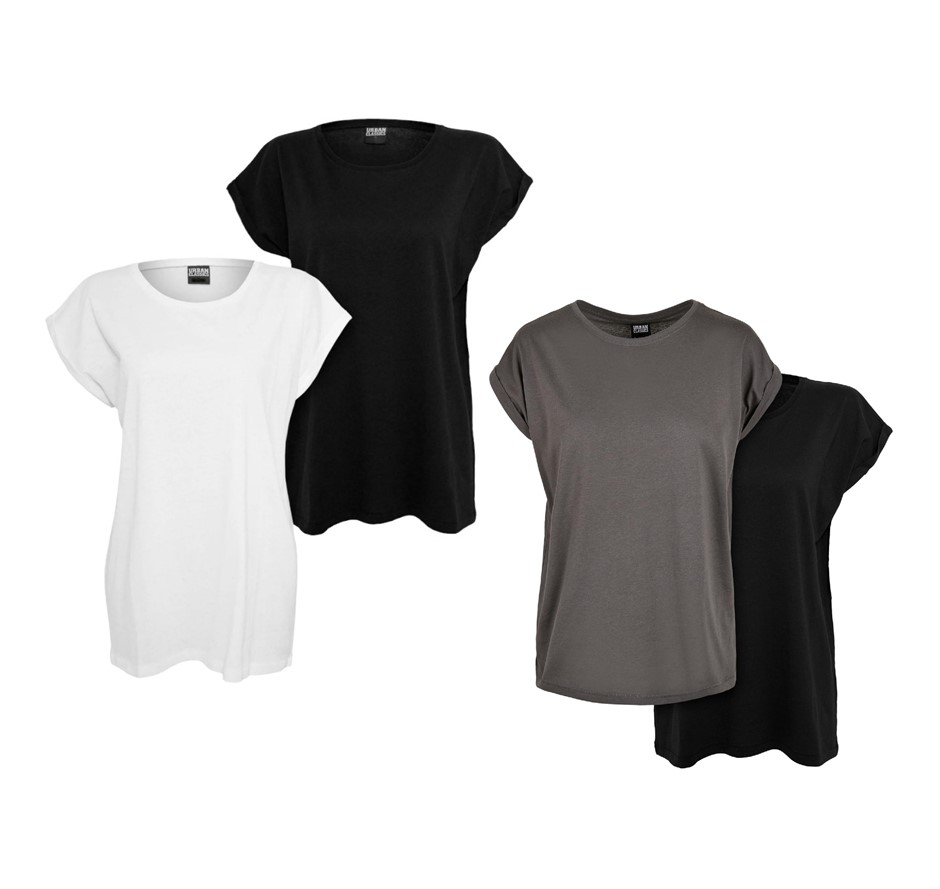4 x URBAN CLASSICS Women's Tees, Size M, 100% Cotton, White/Black/DarkShado