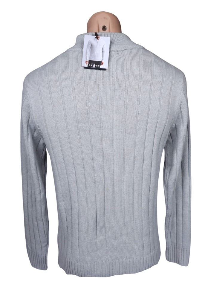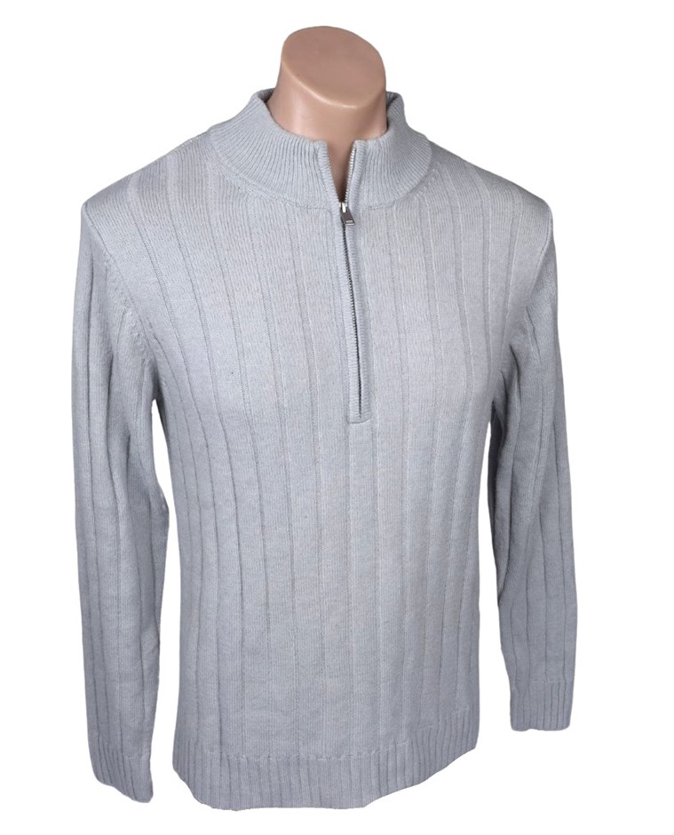 SPORTSCRAFT Men's Quarter Zip Rib Sweater, Size S, 80% Wool, Light Grey, AG