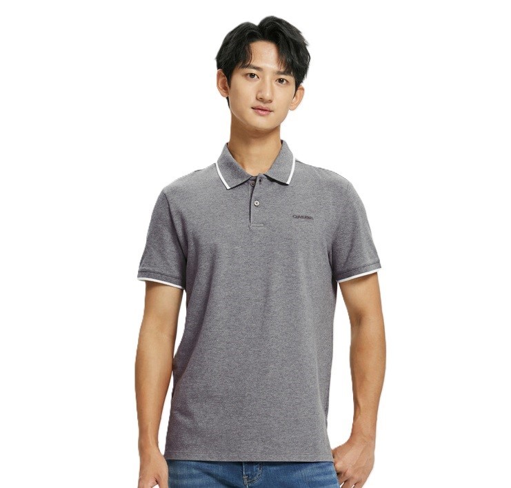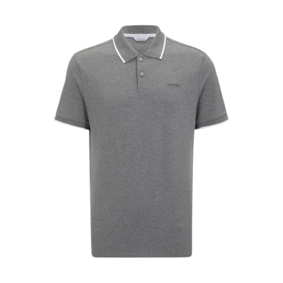 CALVIN KLEIN Men's Polo, Size S (Length LL), 97% Cotton, Grey/White (030),
