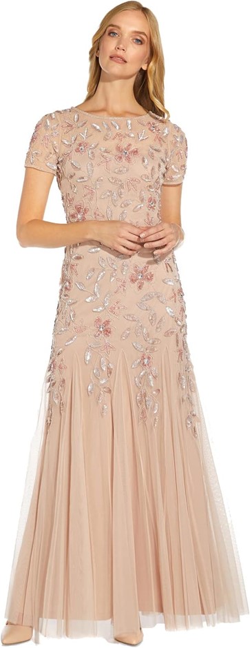 ADRIANNA PAPELL Women's Floral Beaded Gown w/ Godets, Size US10 / AU14, Blu