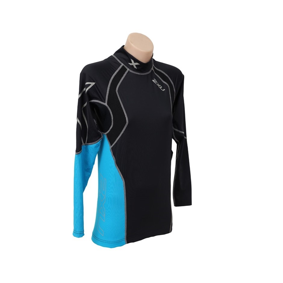 3 x 2XU Men's Long Sleeve High Performance Power Top, Size M, Black/Blue.