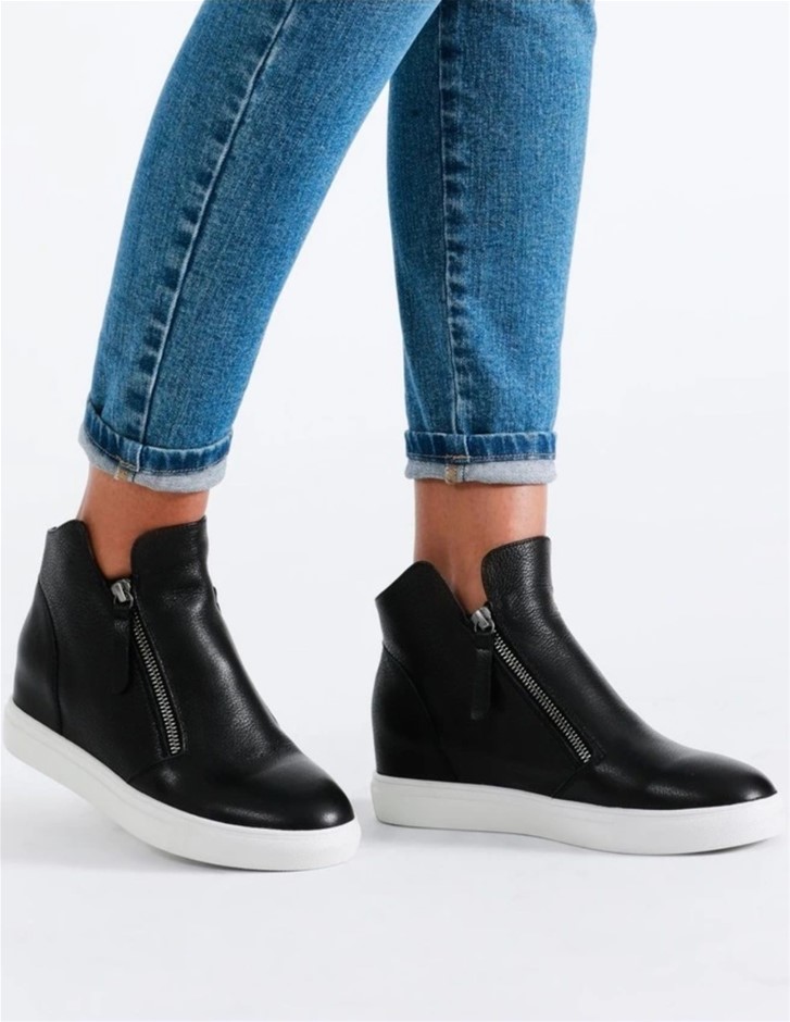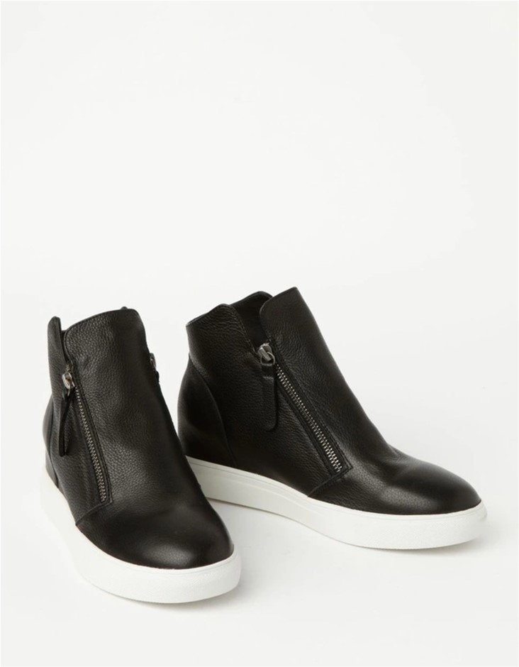 ZAZOU Cane Black Leather Wedged Sneaker, Size EU 37, Black NB: Discoloured