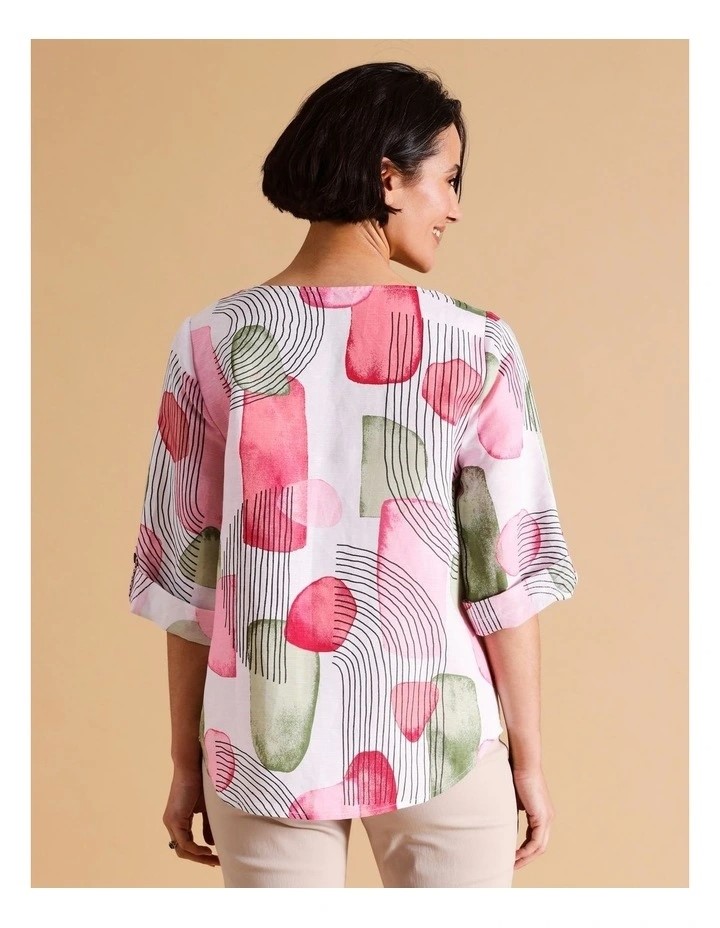 REGATTA European Linen Blend 3/4 Sleeve Top With Button Notch Neck. Size: 1