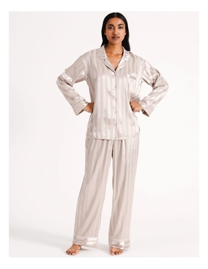 CHLOE & LOLA Luxe Satin Long Sleeve Pyjama Set. Size: Medium. Champagne.