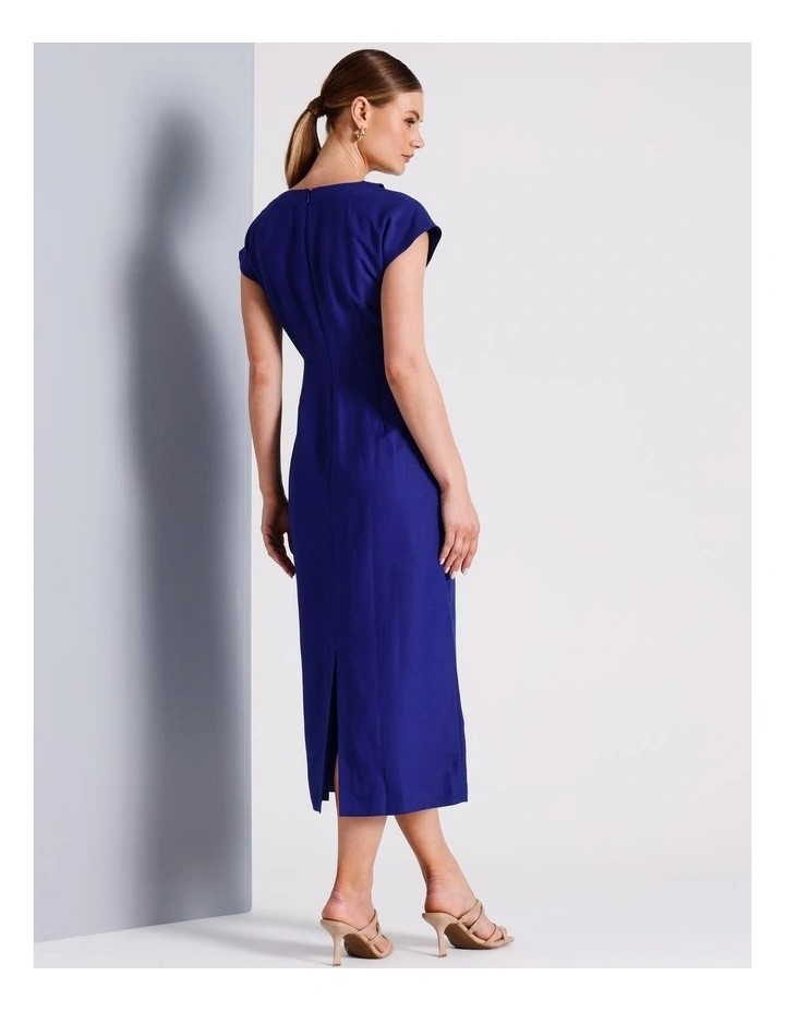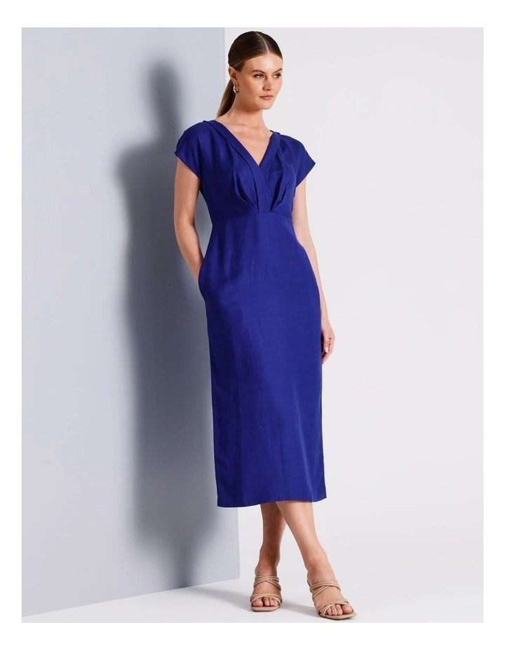 BASQUE Linen Blend Pleated Dress. Size: 12. Colour: Cobalt. Buyers Note -