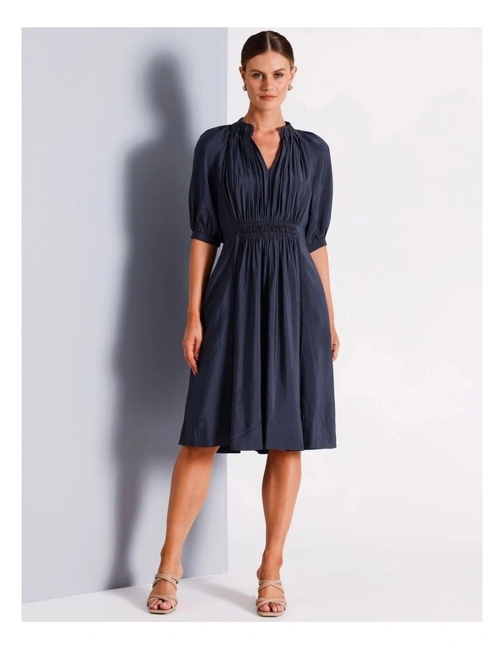 BASQUE Short Sleeve Maxi Dress with Pin Tucked Round Neckline with Elastici