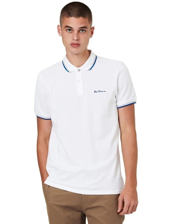 BEN SHERMAN Signature Romford Polo Shirt. Size: L. Colour: White/Blue. NB: