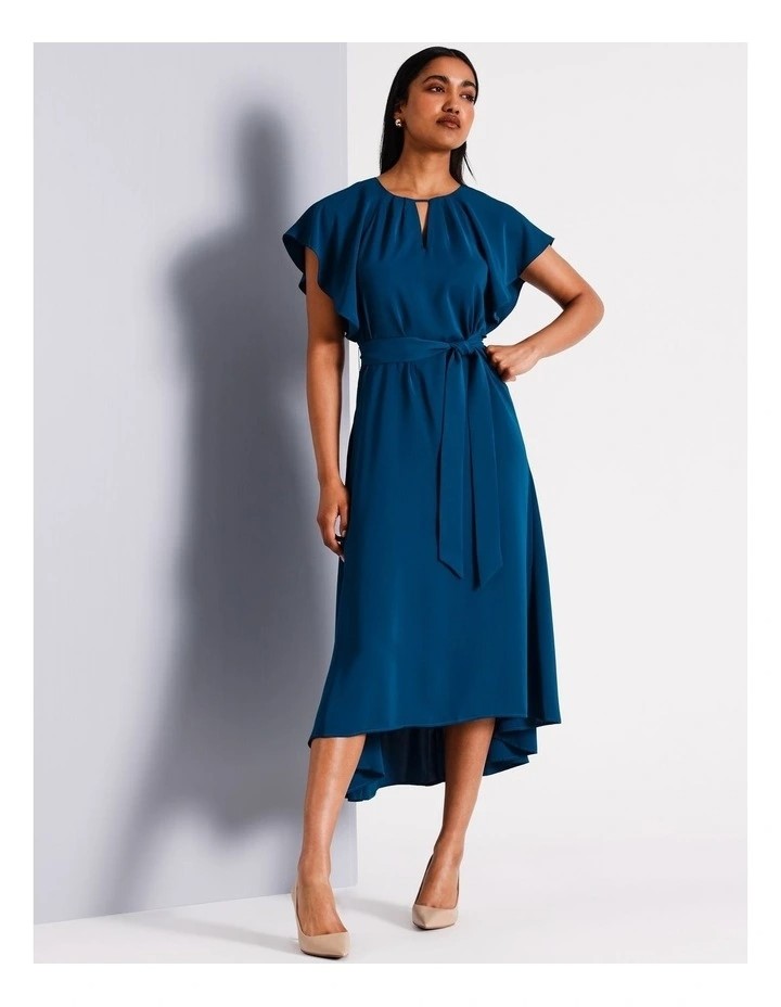 BASQUE Recycled Polyester Flutter Sleeve Midi Dress. Size: 10. Teal. Buyer