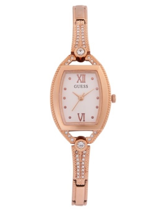 GUESS Women White Embellished Analogue Watch, Rosegold. NB: Used
