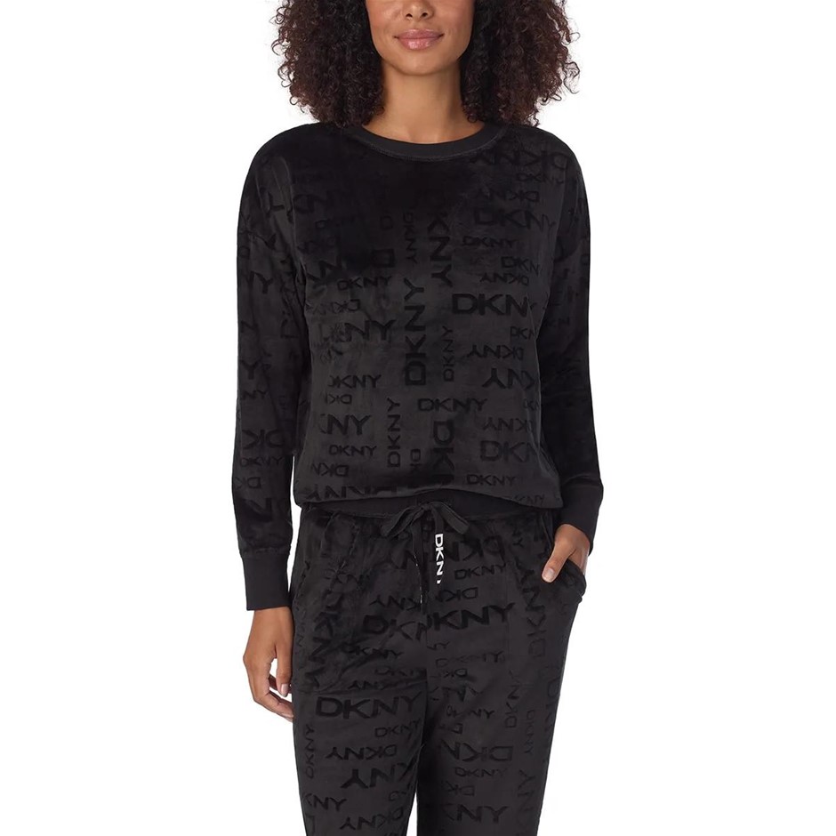 2pc DKNY Women's Stretch Velour Lounge Set, Size XS, 95% Polyester, Black.