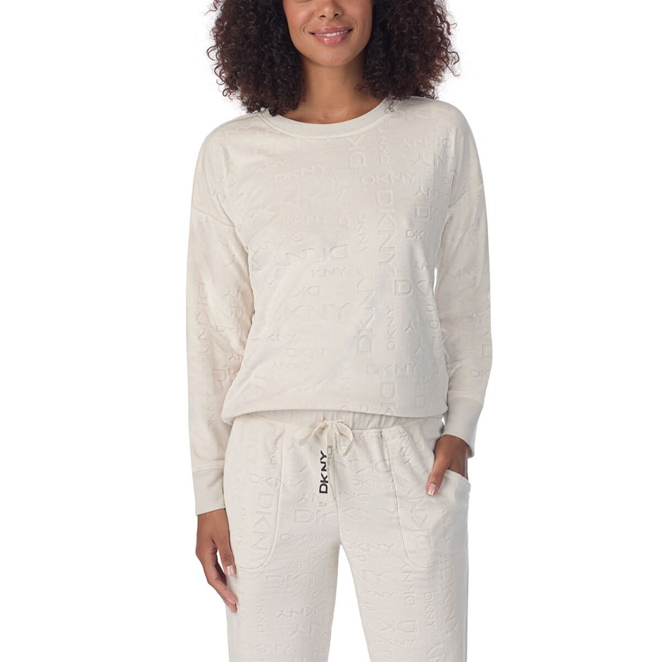 2pc DKNY Women's Stretch Velour Lounge Set, Size XL, 95% Polyester, Beige.