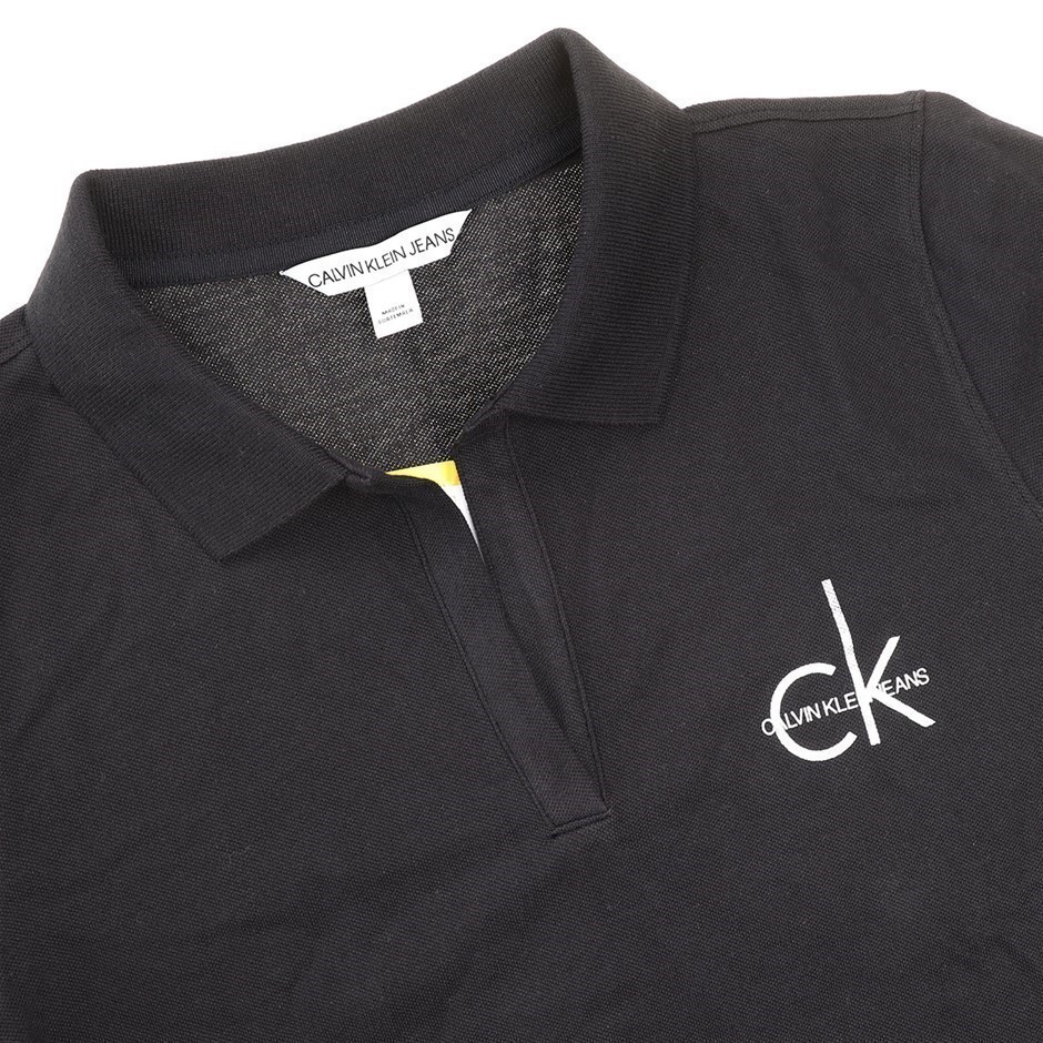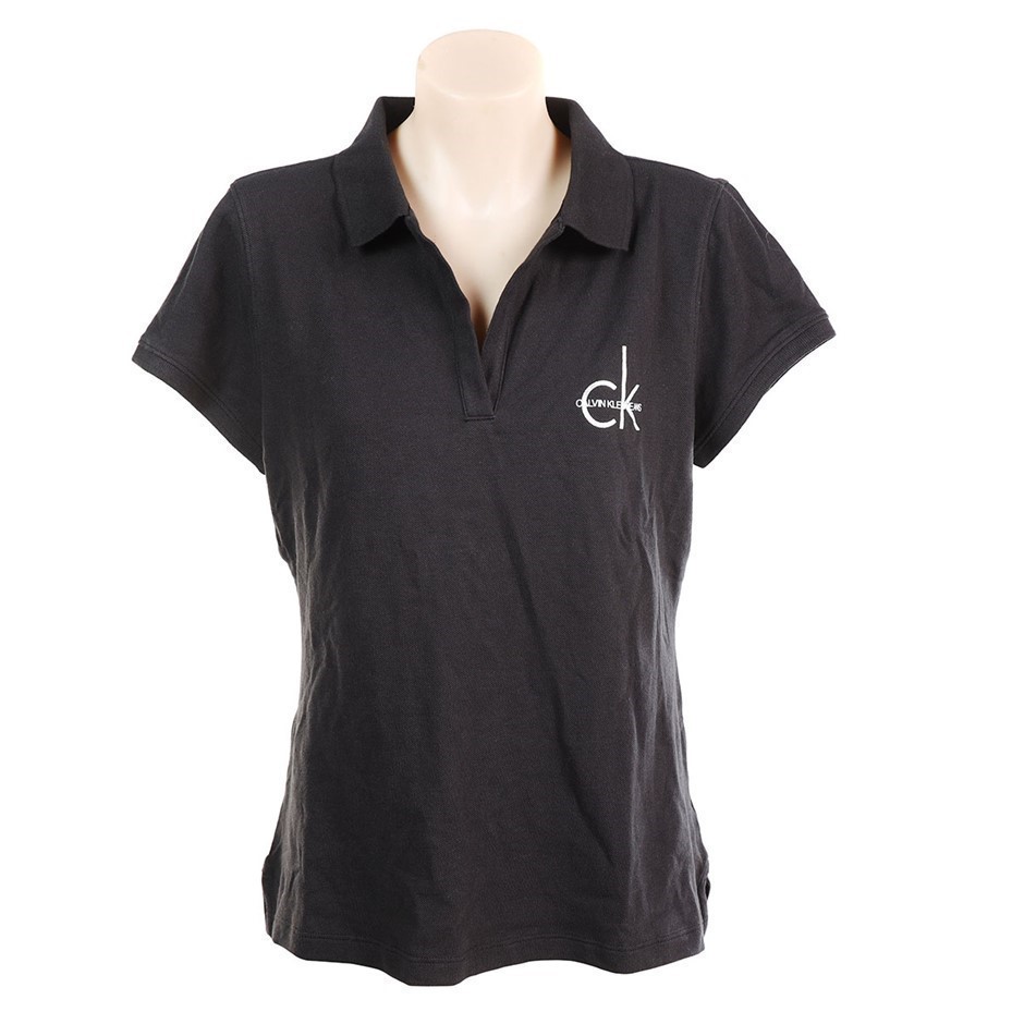 CALVIN KLEIN Women's Buttonless Polo, Size S, 97% Cotton, Black (BLK).