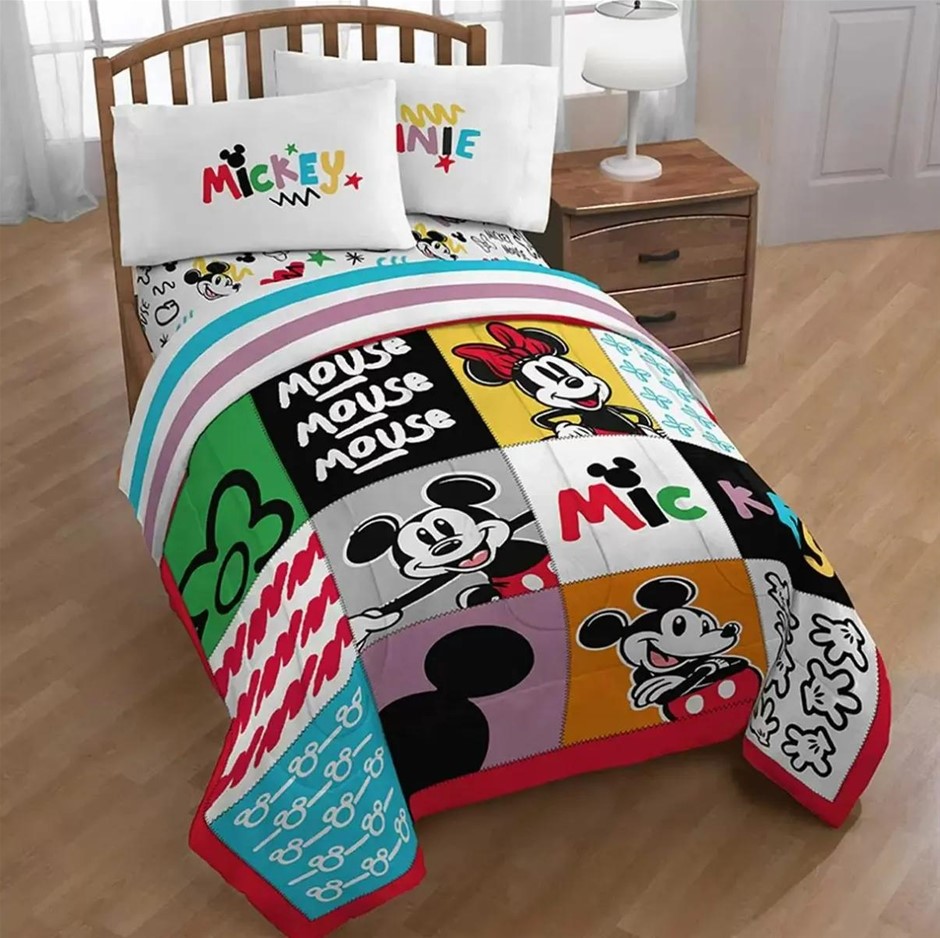 DISNEY Bedding Single 4 Piece Set Mickey And Minnie. Includes: 1 x single c