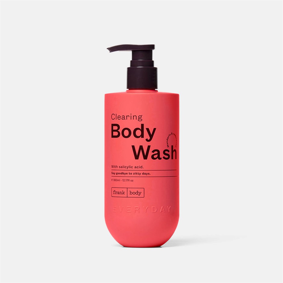 6 x FRANK BODY Clearing Body Wash, 360ml. NB: 1 x missing pump; still seale