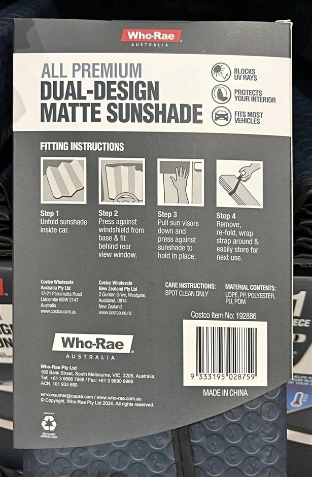 WHO-RAE All PRemium Dual Design Matte Sunshade, Front Window Shade Size (W1 Lot No: 0069-3140583 |