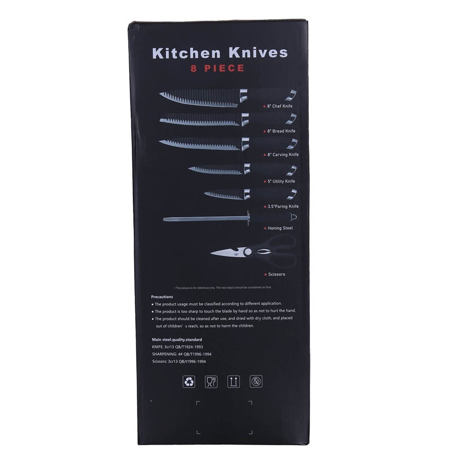 CF 8pc Kitchen Knife Set Comprising : Chef, Bread & Carving Knives 8", Util