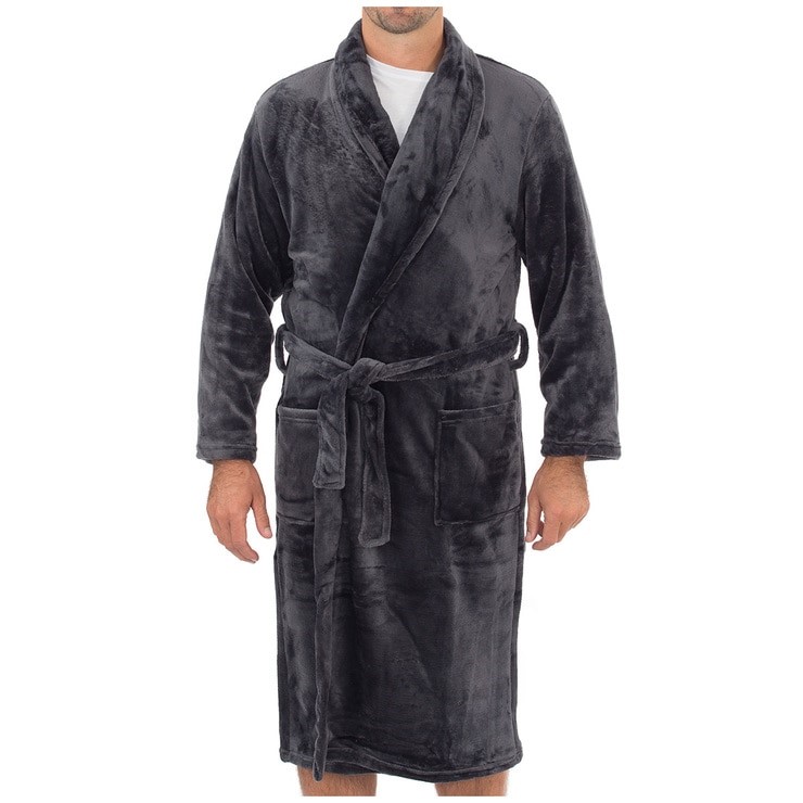 GLOSTER Men's UltraPlush Fleece Shawl Collar Robe, Size L/XL, 100% Polyeste