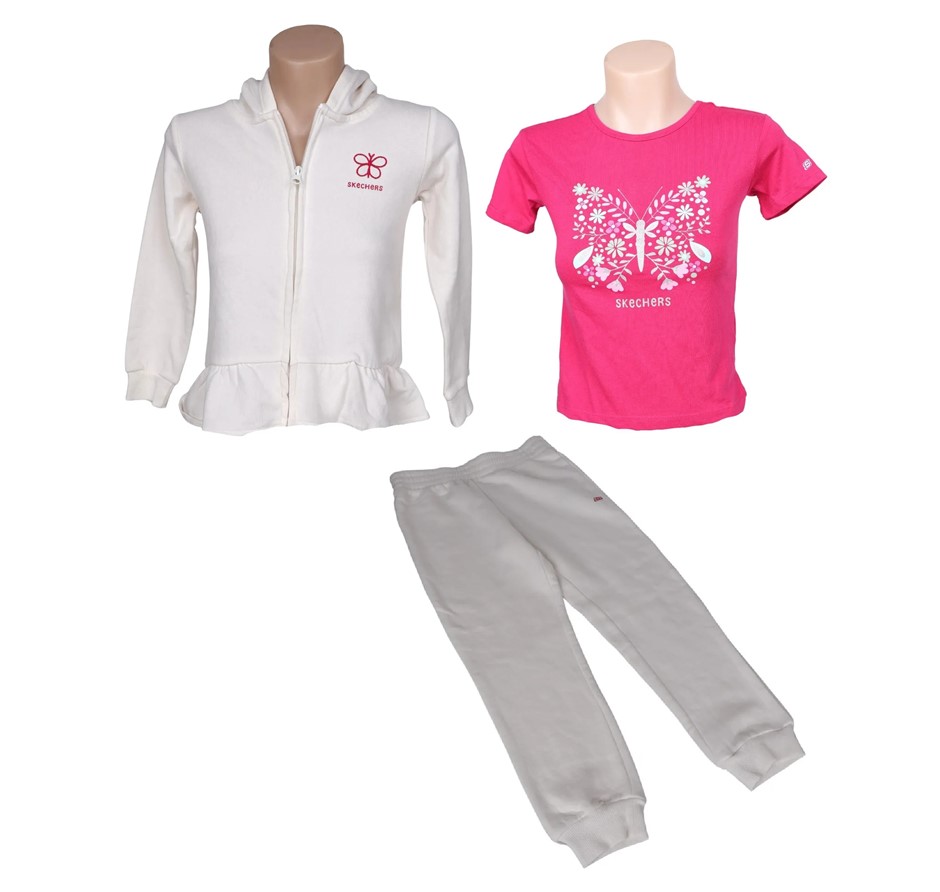 3pc SKECHERS Kids' Hood Set, Size 6, Incl: Hoodie, Tee & Pant, Cream/Pink.