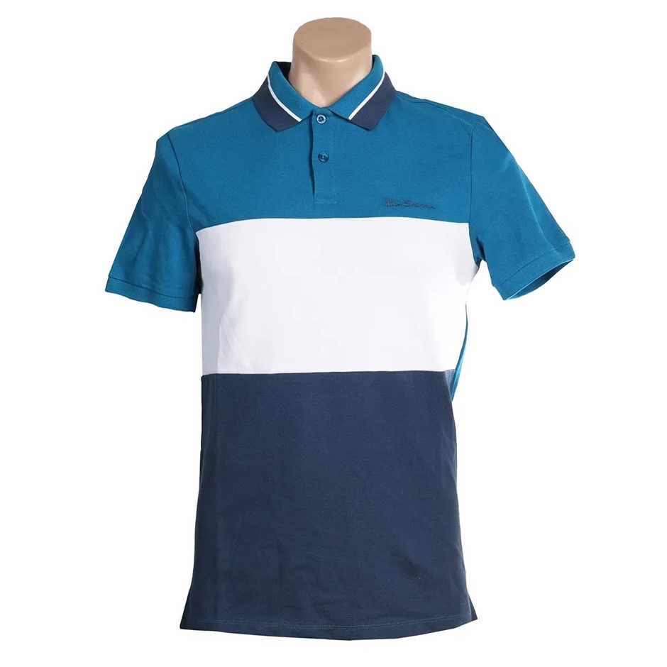 BEN SHERMAN Men's Polo, Size 2XL, 100% Cotton, Cyan/Navy/White (B30), PSBAP
