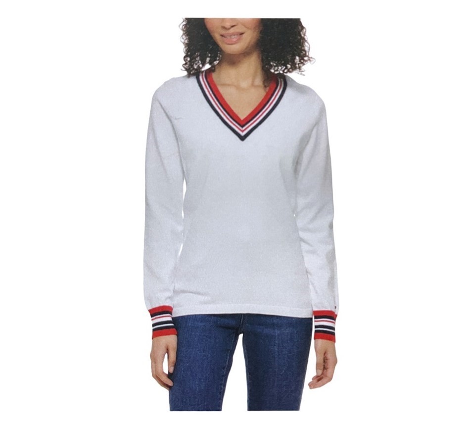 TOMMY HILFIGER Women's Ivy V-Neck Sweater, Size L, 100% Cotton, 174 Bright