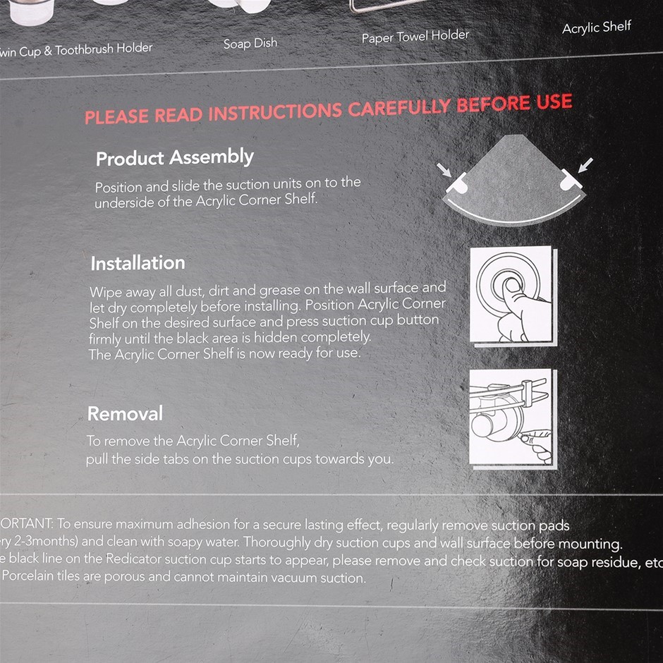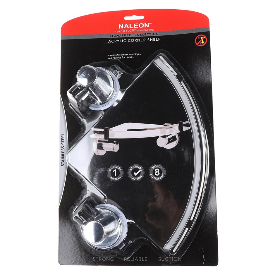 NALEON Super Suction Acrylic Corner Shelf. Stainless Steel . Capacity 8kg.
