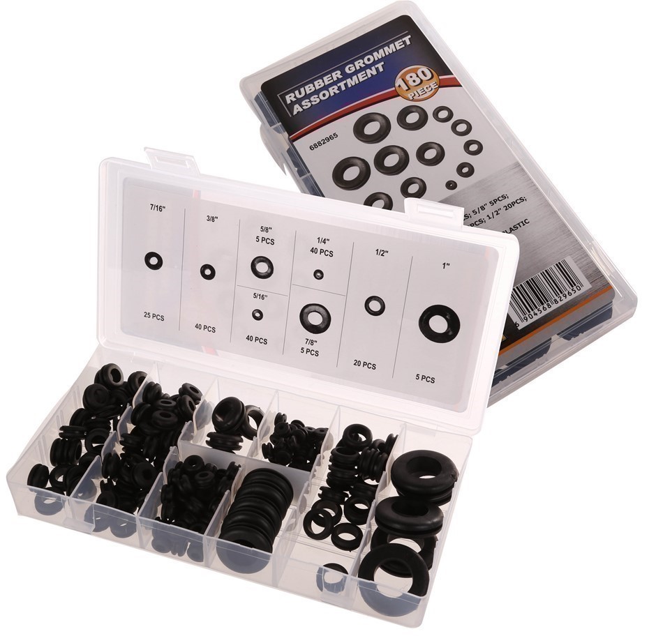 180pc Rubber Grommet Assortment. Contents: Refer Image.