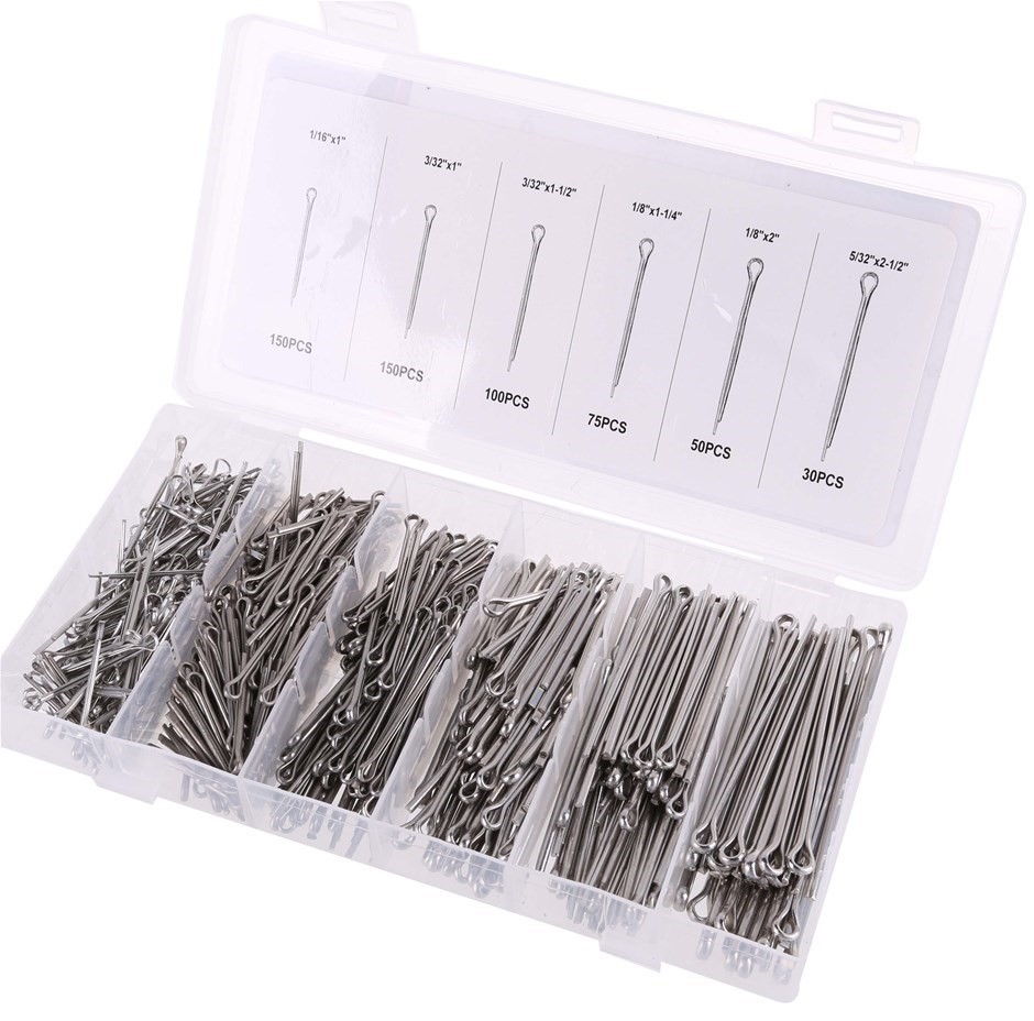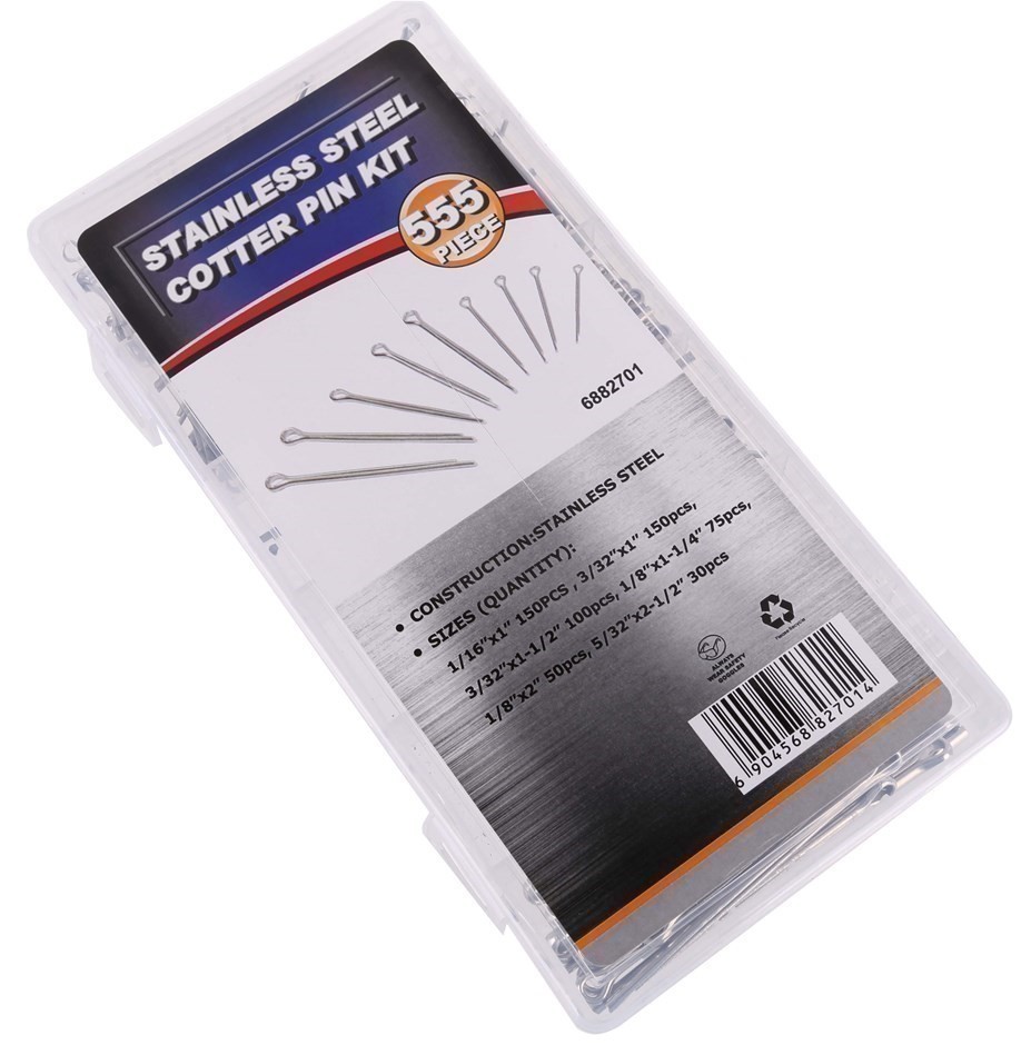 555pc Stainless Steel Cotter Pin Assortment. Sizes; See Image.